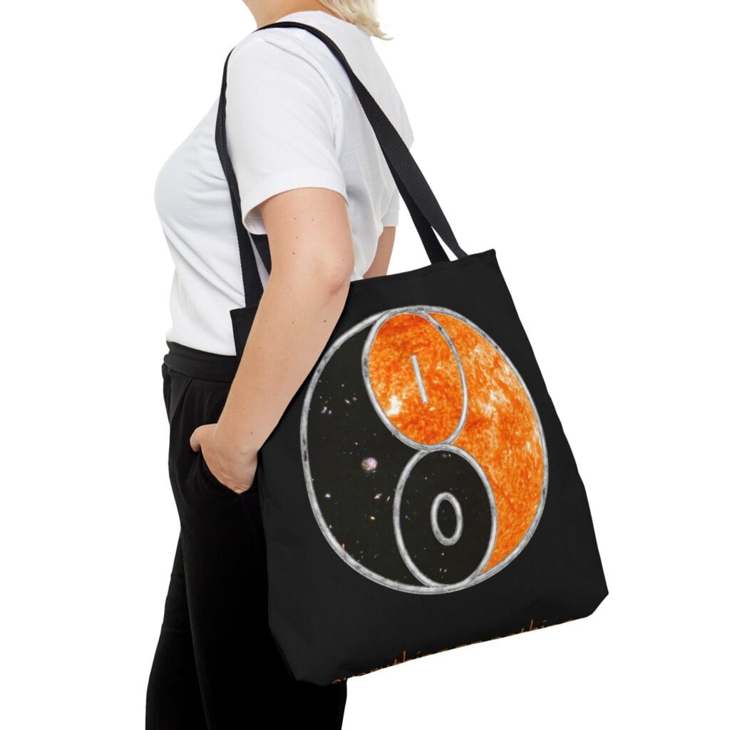 Introducing a powerful symbol that represents the infinite interconnection of all things, printed on a nice Tote/Bag. This intricate design captures the paradoxical nature of existence, where everything and nothing are the same thing, and all is one. It’s a reminder that our lives are not predetermined by any external force, but rather, we are the masters of our own destinies. By taking ownership of our choices, we become the architects of our lives and the universe around us. This symbol is a statement of empowerment and a call to action. If a god exists, it must be within us, and this symbol serves as a powerful reminder of that fact.